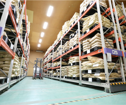 弊社では定温生薬倉庫3棟を設置し、約150種類の生薬をそれぞれの特性に応じて分類し保管しています。倉庫の温度・湿度管理を徹底することで、虫やカビの発生自体を抑えることはもちろん、生薬受け入れ時の品質をそのまま維持できるよう努めています。